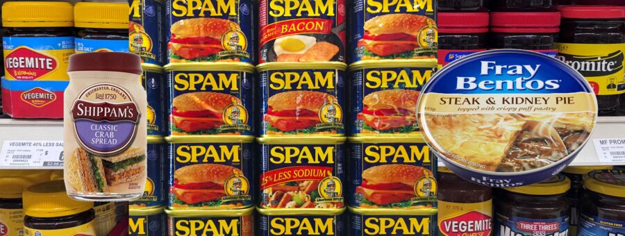 Another great offender in the British grocery shop is its preserved and processed tinned luncheon meat known as SPAM which, as I understand, stands for Spiced Ham, although I can think of far more appropriate acronyms to describe this strange tasting meat with an unpleasantly dogfood-like texture.